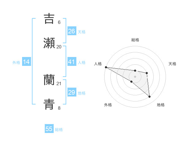 吉瀬 蘭青さんの人格は41画の5点!