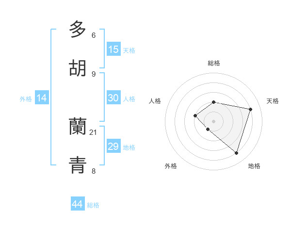 多胡 蘭青さんの総格は44画の2点!