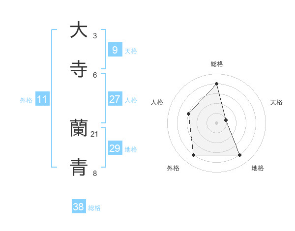 大寺 蘭青さんを姓名の画数から五運を鑑定