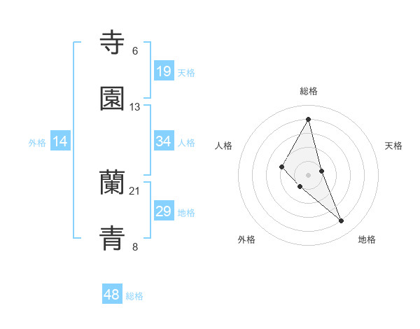 寺園 蘭青さんを姓名の画数から五運を鑑定