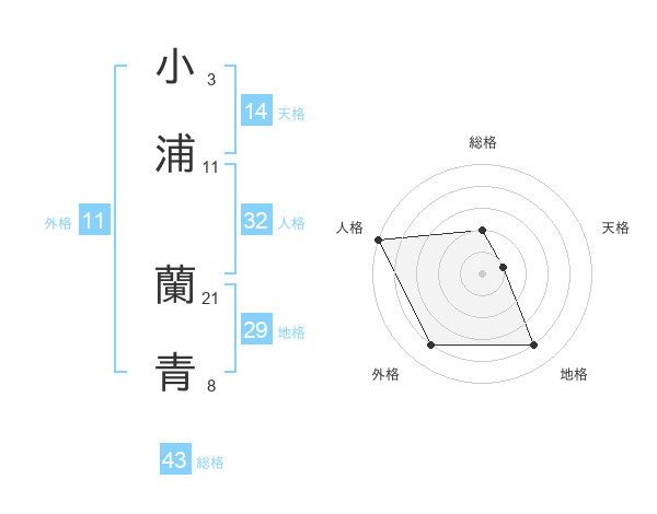 小浦 蘭青さんの外格は11画の4点!