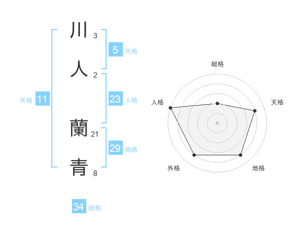 川人 蘭青さんの総格は34画の2点!