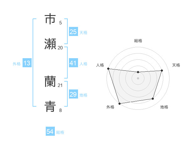 市瀬 蘭青さんの外格は13画の5点!