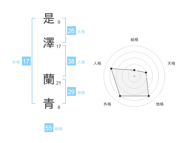 是澤 蘭青さんを姓名の画数から五運を鑑定