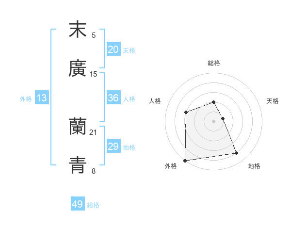 末廣 蘭青さんの総格は49画の2点!