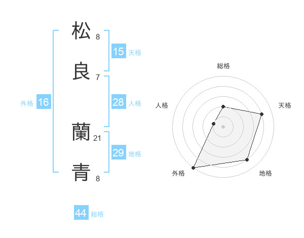 松良 蘭青さんの総格は44画の2点!