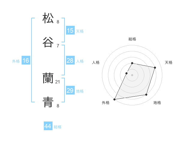松谷 蘭青さんの総格は44画の2点!
