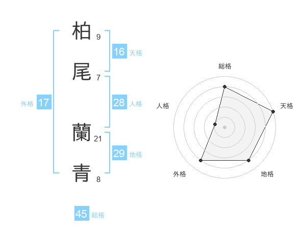 柏尾 蘭青さんの天格は16画の5点!