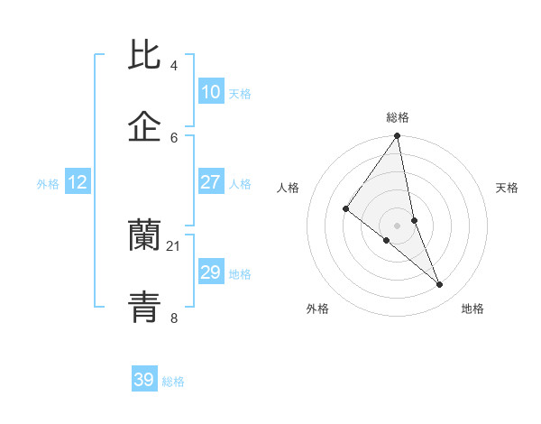 比企 蘭青さんの総格は39画の5点!