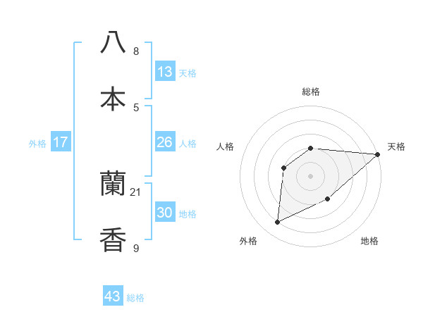 八本 蘭香さんの天格は13画の5点!