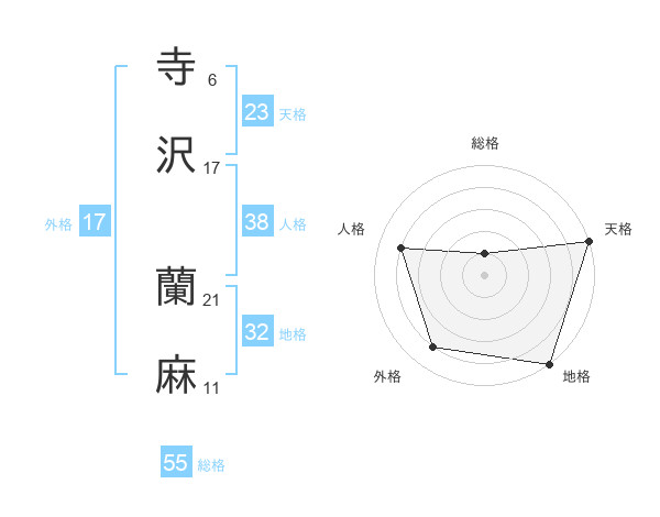寺沢 蘭麻さんを姓名の画数から五運を鑑定