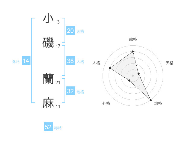 小磯 蘭麻さんを姓名の画数から五運を鑑定