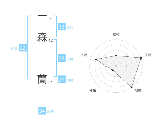 一森 蘭さんの天格は13画の5点!