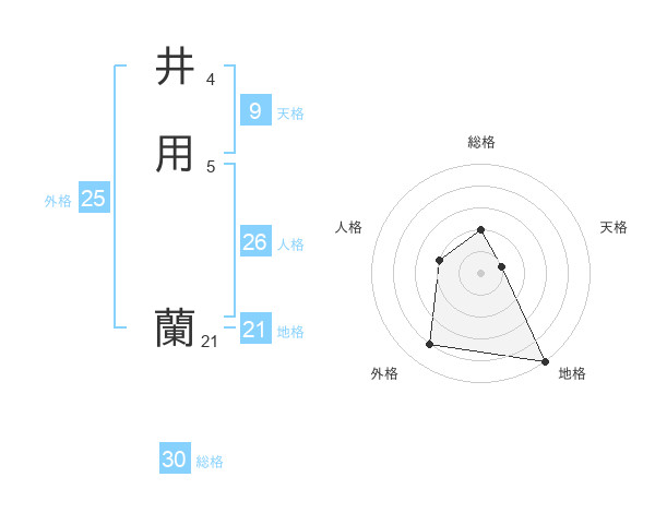 井用 蘭さんの外格は25画の4点!