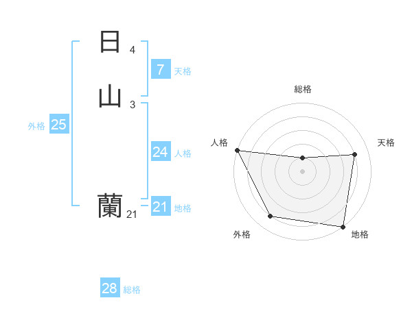 日山 蘭さんの総格は28画の1点!