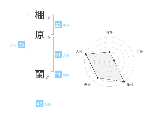 棚原 蘭さんの総格は43画の2点!