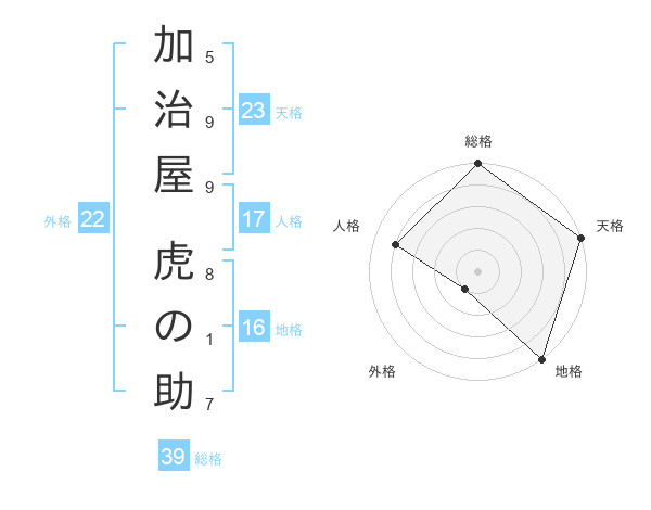 加治屋 虎の助さんの総格は39画の5点