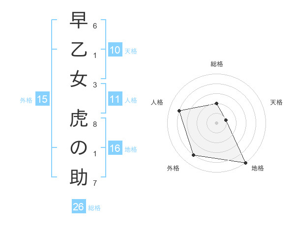 早乙女 虎の助さんを姓名の画数から五運を鑑定