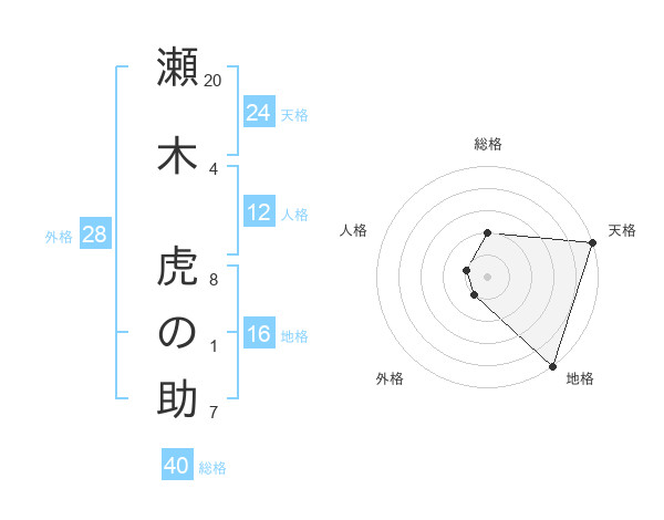 瀬木 虎の助さんを姓名の画数から五運を鑑定