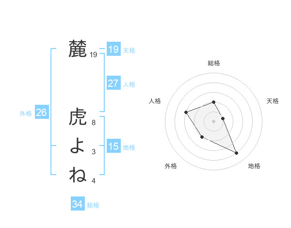 麓 虎よねさんを姓名の画数から五運を鑑定