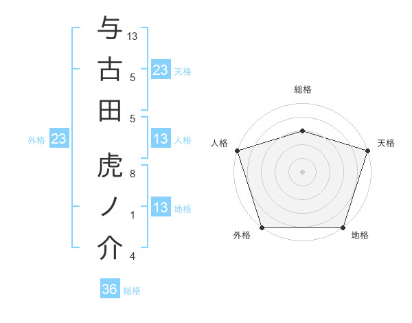 与古田 虎ノ介さんの天格は23画の5点!