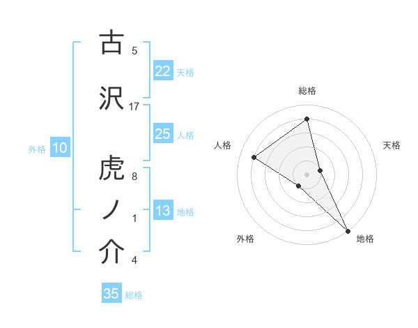 古沢 虎ノ介さんの地格は13画の5点!