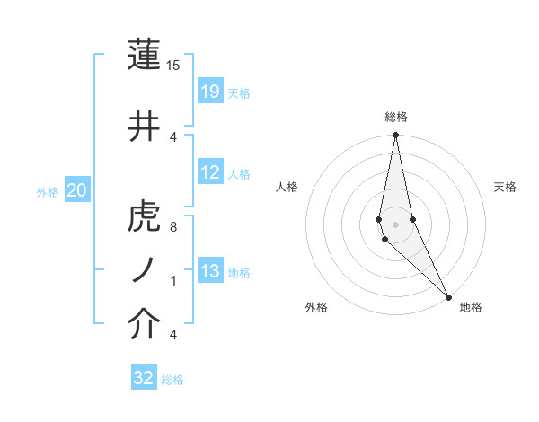 蓮井 虎ノ介さんの地格は13画の5点!