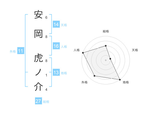安岡 虎ノ介さんを姓名の画数から五運を鑑定