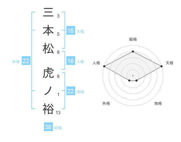 三本松 虎ノ裕さんを姓名の画数から五運を鑑定