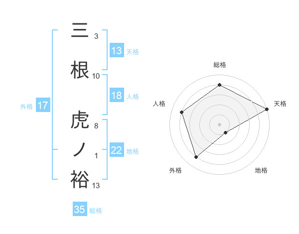 三根 虎ノ裕さんの天格は13画の5点!