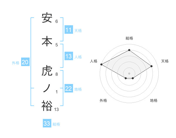 安本 虎ノ裕さんの総格は33画の4点!