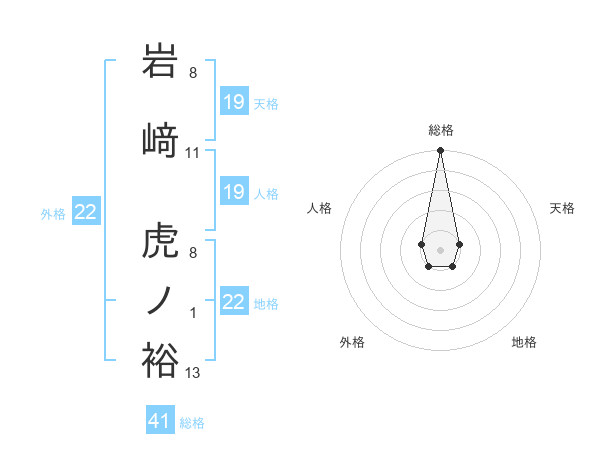 岩﨑 虎ノ裕さんの総格は41画の5点!