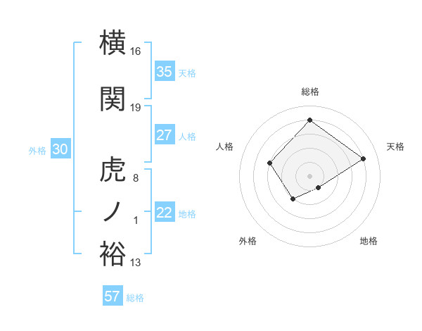 横関 虎ノ裕さんを姓名の画数から五運を鑑定