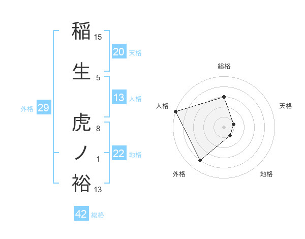 稲生 虎ノ裕さんを姓名の画数から五運を鑑定