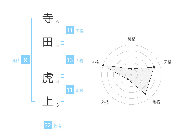 寺田 虎上さんの総格は22画の1点!