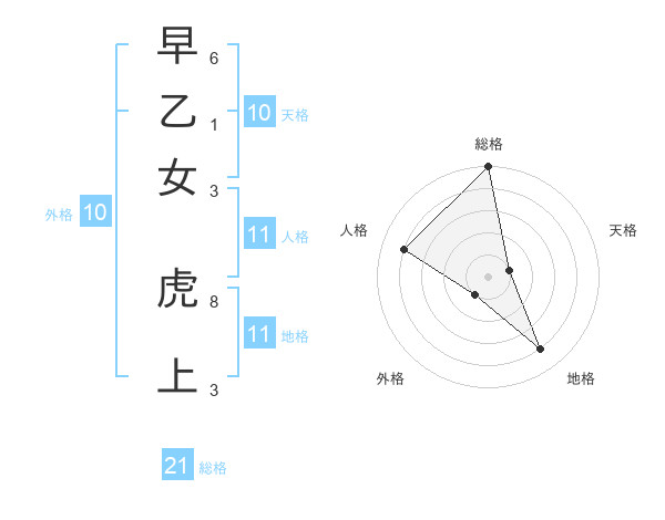 早乙女 虎上さんを姓名の画数から五運を鑑定