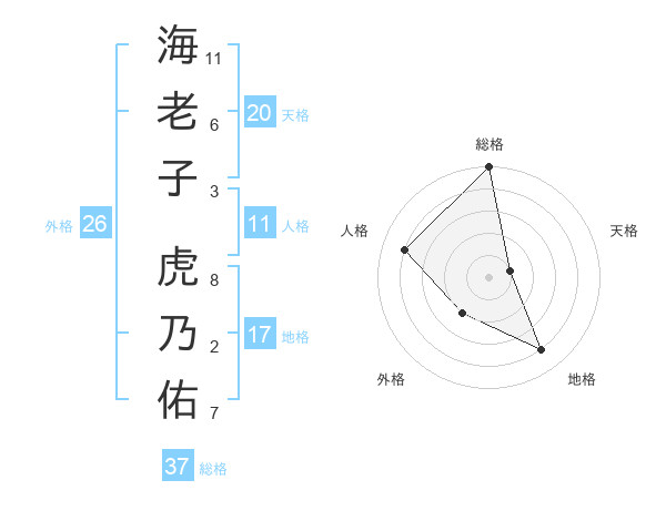 海老子 虎乃佑さんを姓名の画数から五運を鑑定