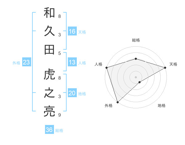 和久田 虎之亮さんを姓名の画数から五運を鑑定
