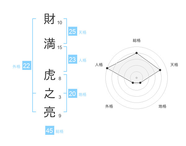 財満 虎之亮さんを姓名の画数から五運を鑑定