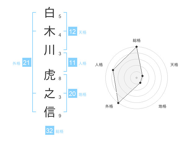 白木川 虎之信さんの外格は21画の5点!