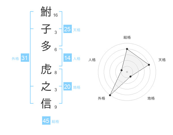 鮒子多 虎之信さんを姓名の画数から五運を鑑定