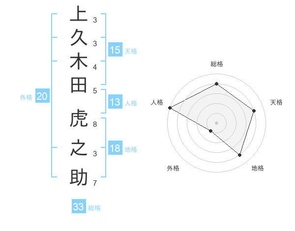 上久木田 虎之助さんを姓名の画数から五運を鑑定