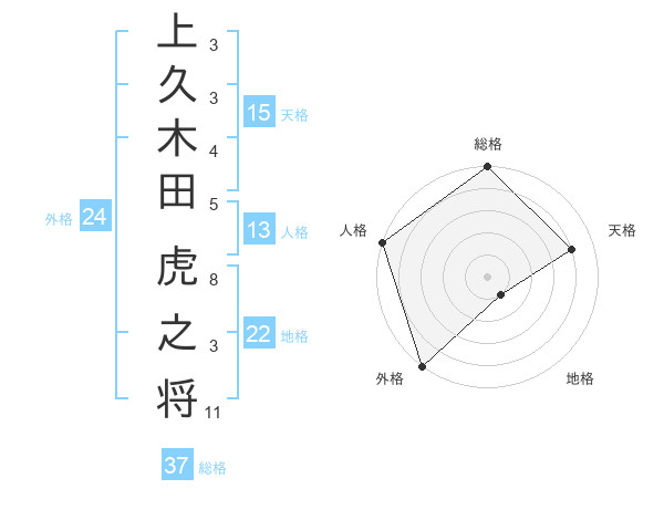 上久木田 虎之将さんを姓名の画数から五運を鑑定