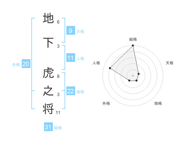 地下 虎之将さんを姓名の画数から五運を鑑定