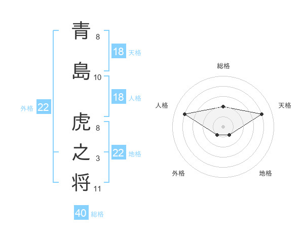 青島 虎之将さんの地格は22画の1点!