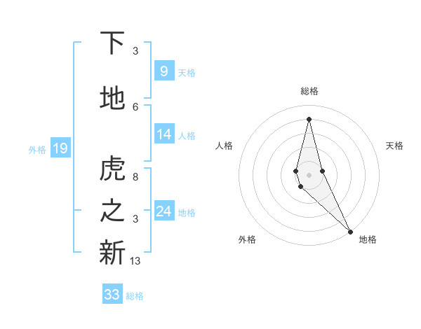 下地 虎之新さんを姓名の画数から五運を鑑定