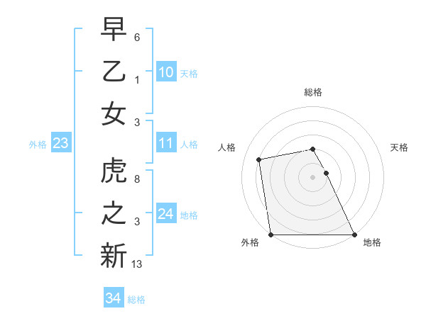 早乙女 虎之新さんを姓名の画数から五運を鑑定