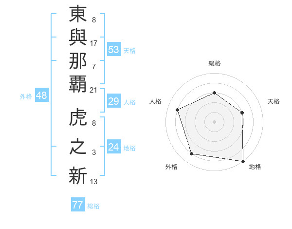 東與那覇 虎之新さんを姓名の画数から五運を鑑定