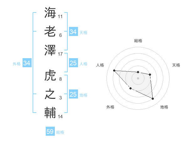 海老澤 虎之輔さんの地格は25画の4点!