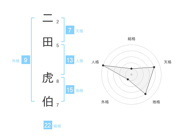 二田 虎伯さんを姓名の画数から五運を鑑定